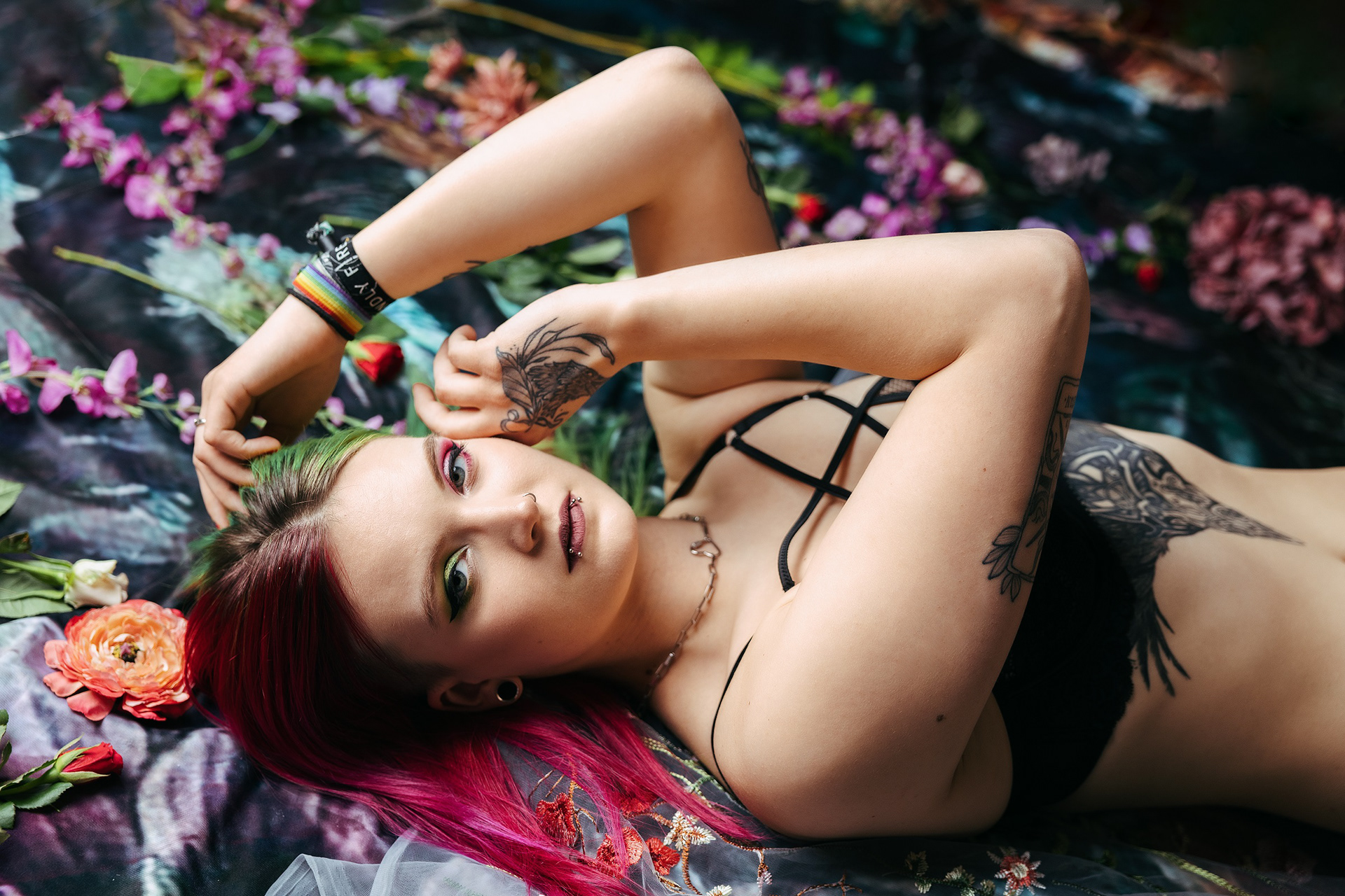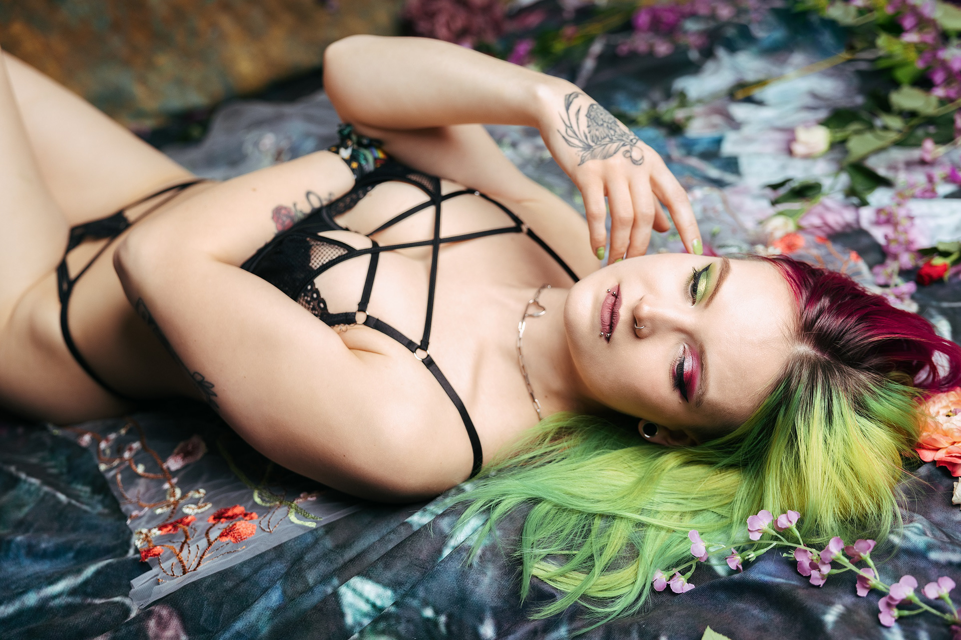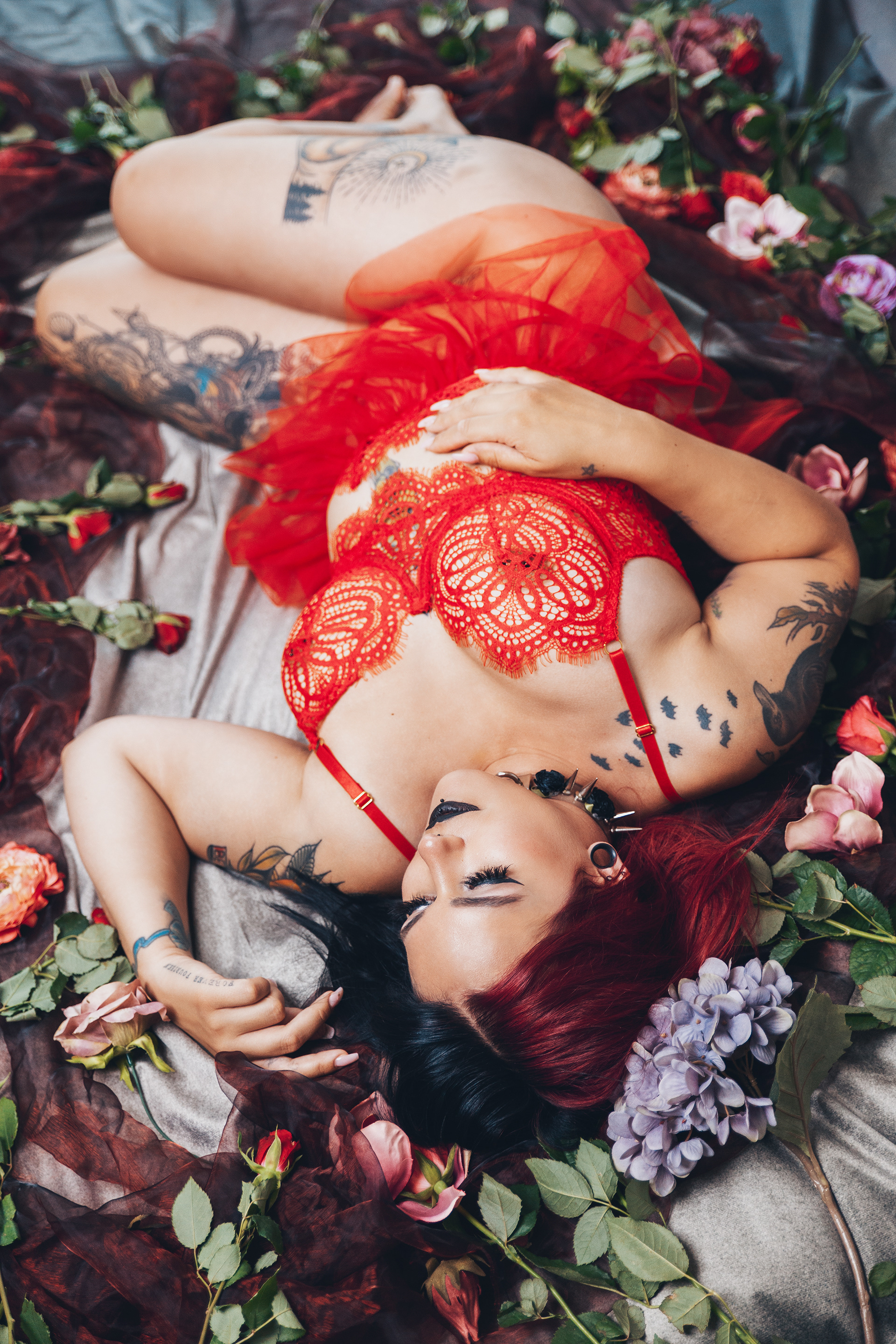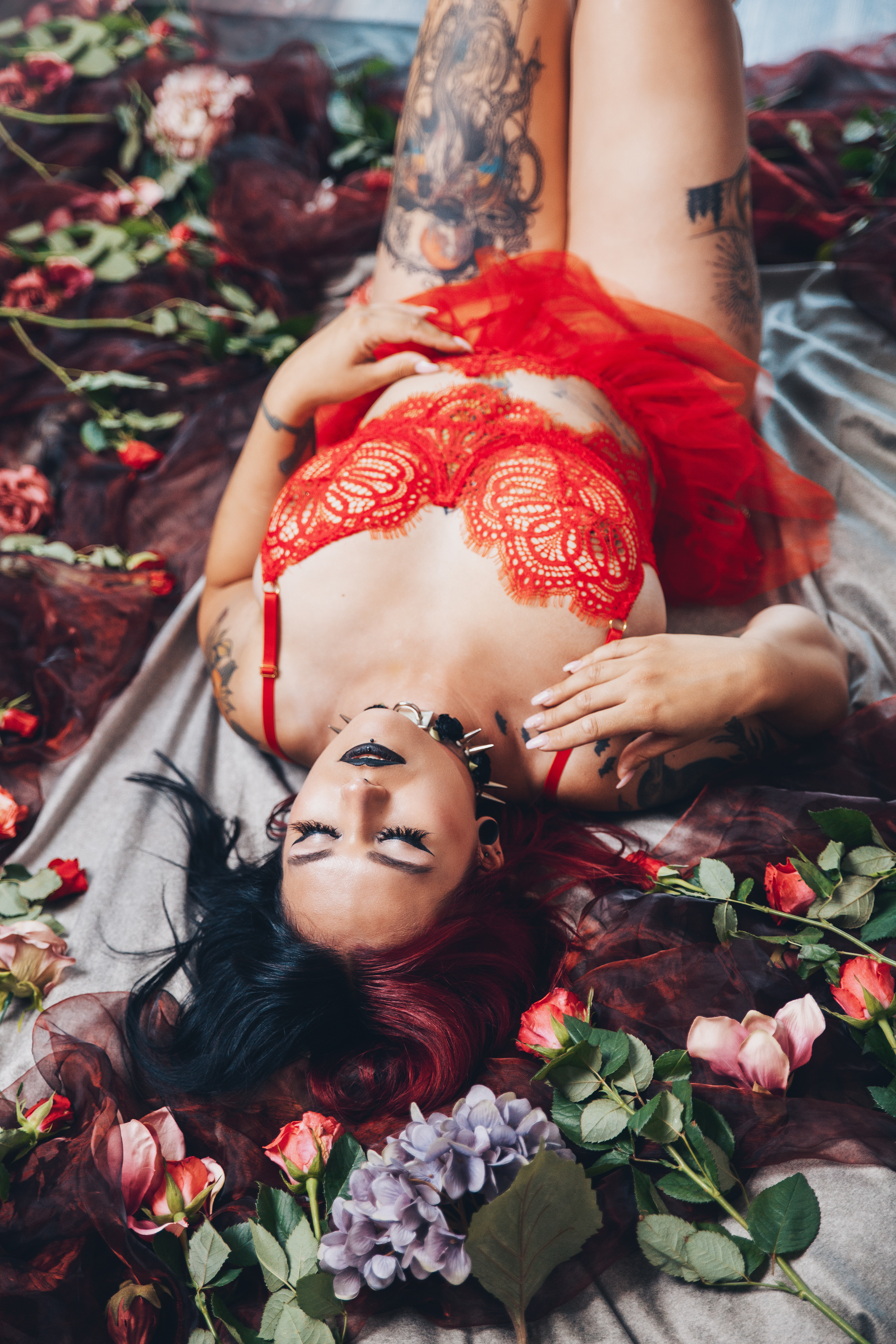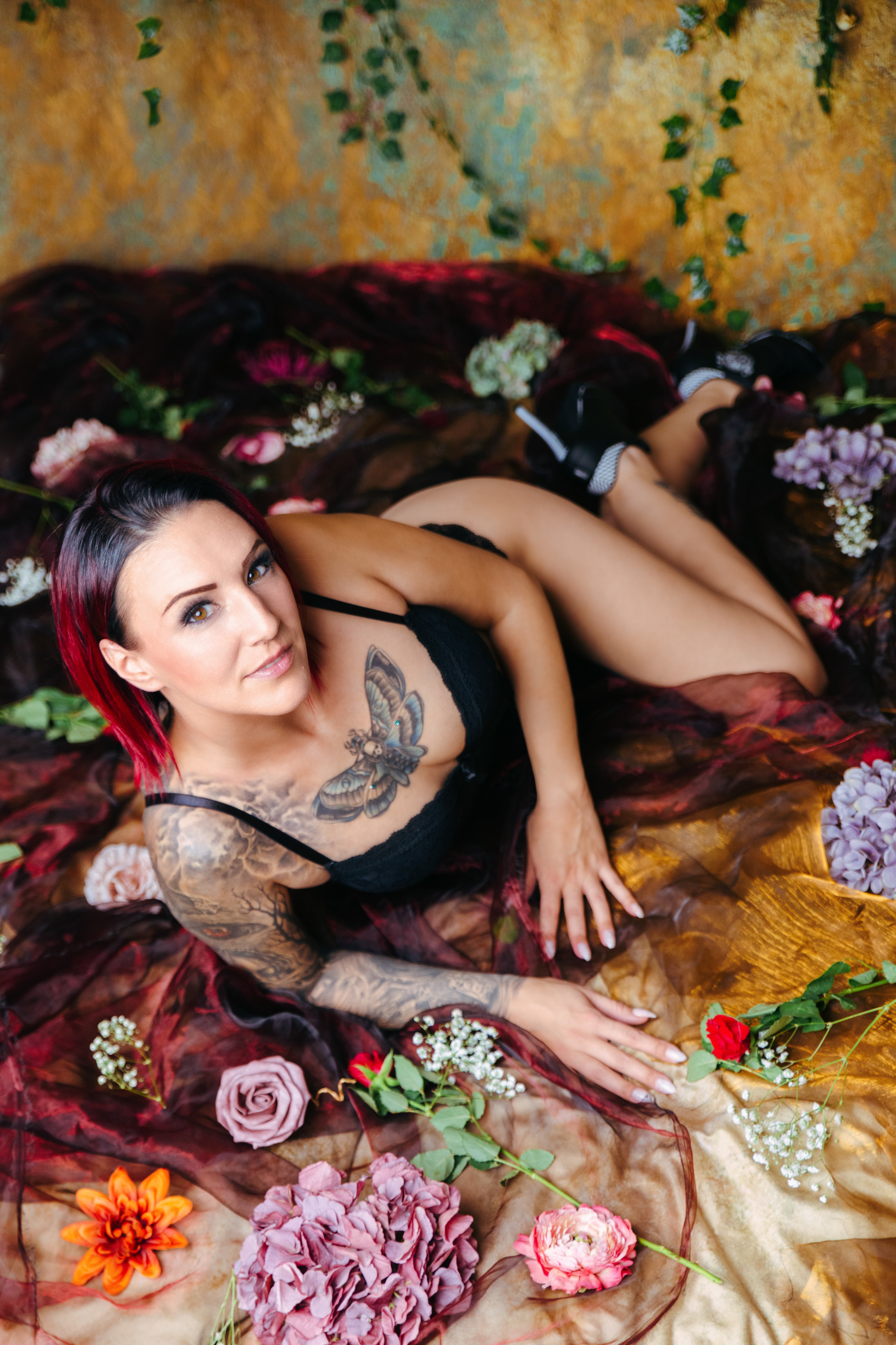 Das besondere Boudoir-Shooting! Wirf dich in deine schönste Wäsche und lass dich in meinem wunderschönen Blumenset fotografieren.